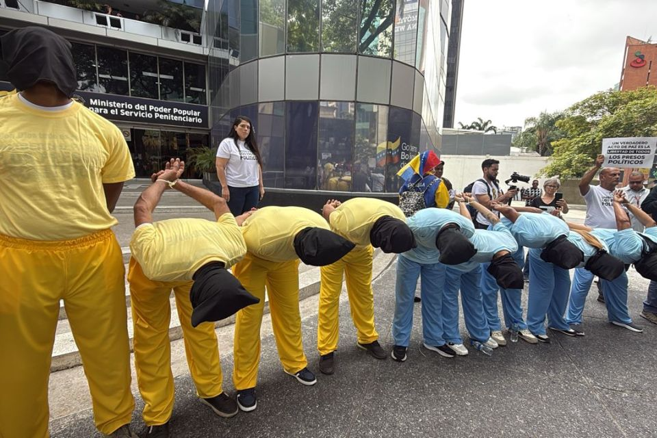 Familiares y activistas nucleados en el Comité por la Libertad de los Presos Políticos se movilizaron este jueves hacia la sede del Ministerio de Servicio Penitenciario para denunciar las condiciones «inhumanas» a las que son sometidas más de 700 personas bajo custodia del Estado. Ataviados con los uniformes azul y amarillo impuestos en los penales, los manifestantes entregaron un documento detallando una crisis que abarca desde la desnutrición severa hasta la falta absoluta de asistencia médica en centros críticos como el Rodeo I y el Fuerte Guaicaipuro.